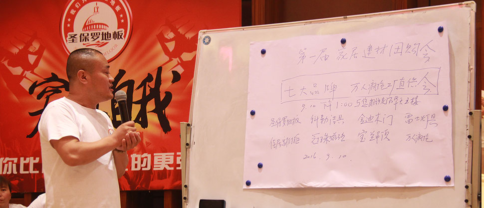 2016年7月5日,圣保羅地板2016’全國(guó)營(yíng)銷精英培訓(xùn)會(huì)于湖南療養(yǎng)之鄉(xiāng)——灰湯華天城溫泉度假酒店盛大開幕。來(lái)自全國(guó)各地的近兩百名營(yíng)銷精英匯聚一堂,開啟了為期三天的培訓(xùn)之旅。圣保羅地板安徽區(qū)總經(jīng)銷商汪總以多年的實(shí)戰(zhàn)進(jìn)行了地板營(yíng)銷、運(yùn)營(yíng)管理經(jīng)驗(yàn)的分享與傳授,并現(xiàn)場(chǎng)解疑答惑;來(lái)自湖南商學(xué)院的尹元元博士進(jìn)行了“互聯(lián)網(wǎng)+經(jīng)濟(jì)發(fā)展趨勢(shì)”分析及“品牌聯(lián)盟策劃”專題講座。中華地板網(wǎng)作為行業(yè)垂直門戶領(lǐng)跑者受邀參與了本次盛會(huì),對(duì)會(huì)議盛況進(jìn)行全程直播報(bào)道的同時(shí),對(duì)圣保羅地板優(yōu)秀經(jīng)銷商代表進(jìn)行了專訪。