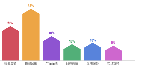 投資回報與投資金額是代理商考慮加盟最關(guān)心的前兩個問題,占比分別為32%和